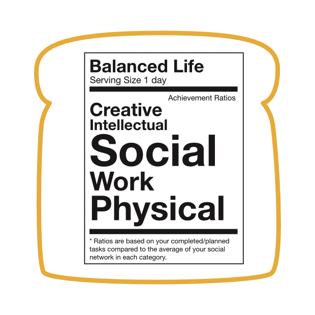 I first wrote the Daydar service, which aggregated a social group's to-do items from the Remember The Milk to-do list service and produced RSS feeds categorized by a sort-of Maslow's hierarchy of needs: physical, work, social, intellectual, and creative. We then built a series of physical and digital artifacts on this data, exploring ways to improve productivity, as well as the darker side of quantifying it.