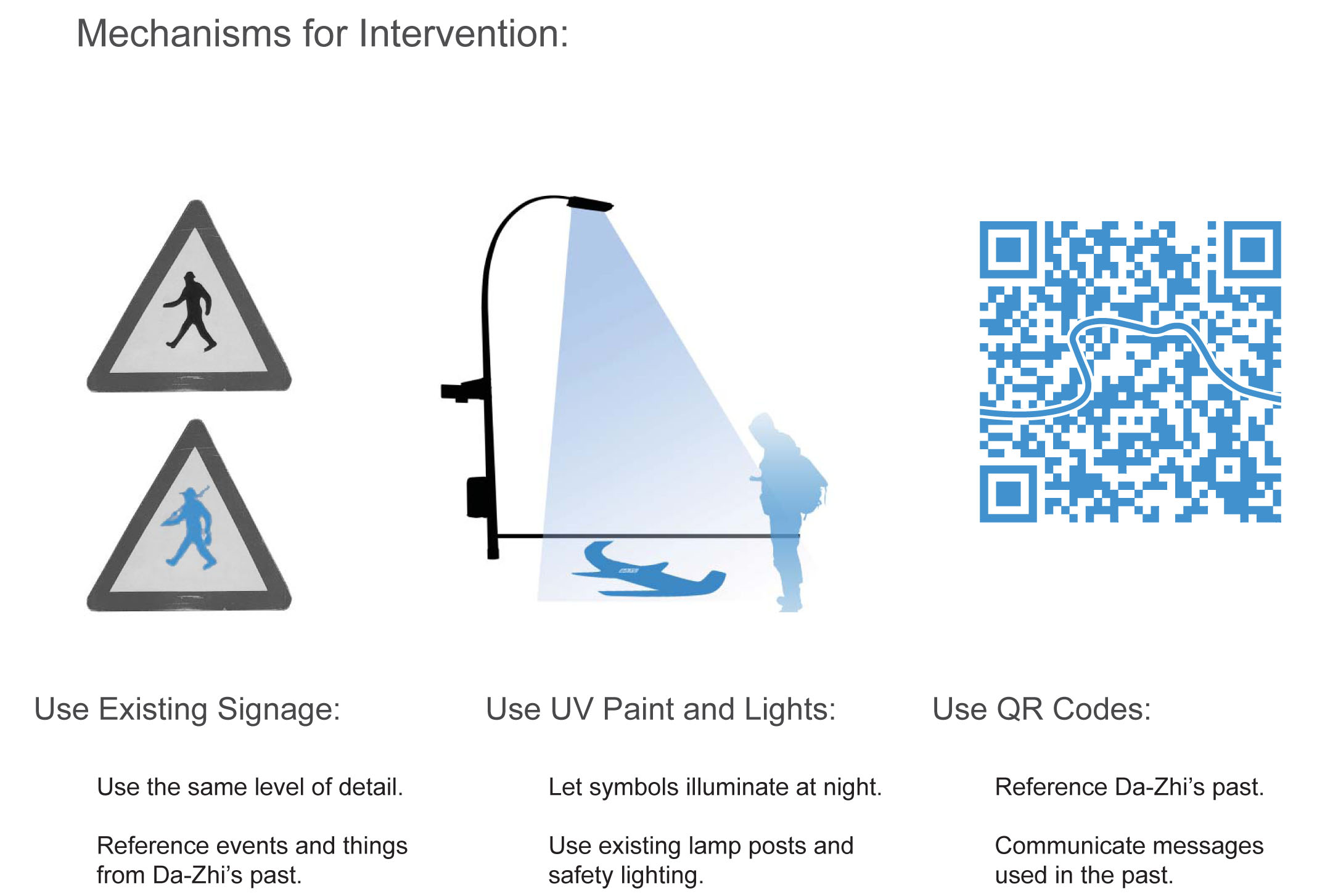 The interventions were designed at every scale, from personal to birds-eye view.