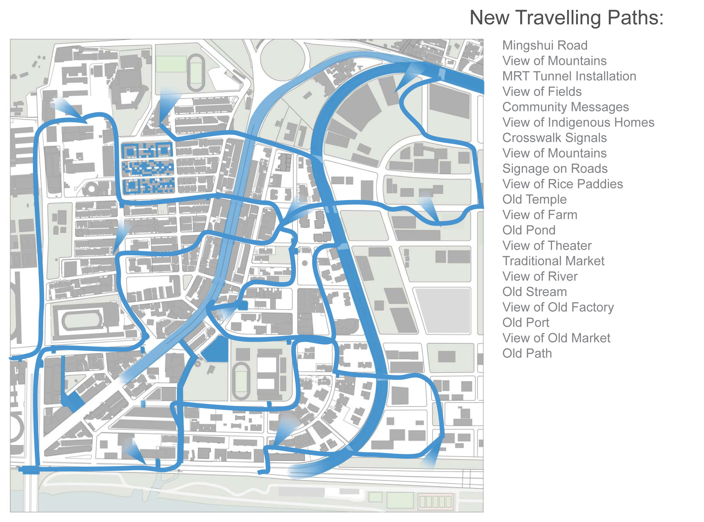 This was a public art proposal in the Dazhi district of Taipei, along a road that traces where the Keelung River once ran before it was moved for flood planning purposes. I led a team of nine designers, architects and urban planners from MIT and Shih Chien University to research, plan and prototype this in a two-week competitive exercise for the city and local university.