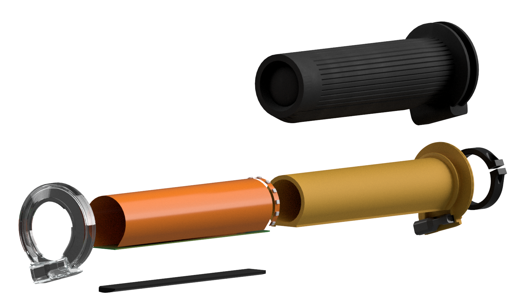 The brief was to embed their touch surface technology into a handlebar grip that could be slipped onto a motorcycle, scooter, or bicycle (with a power supply).
