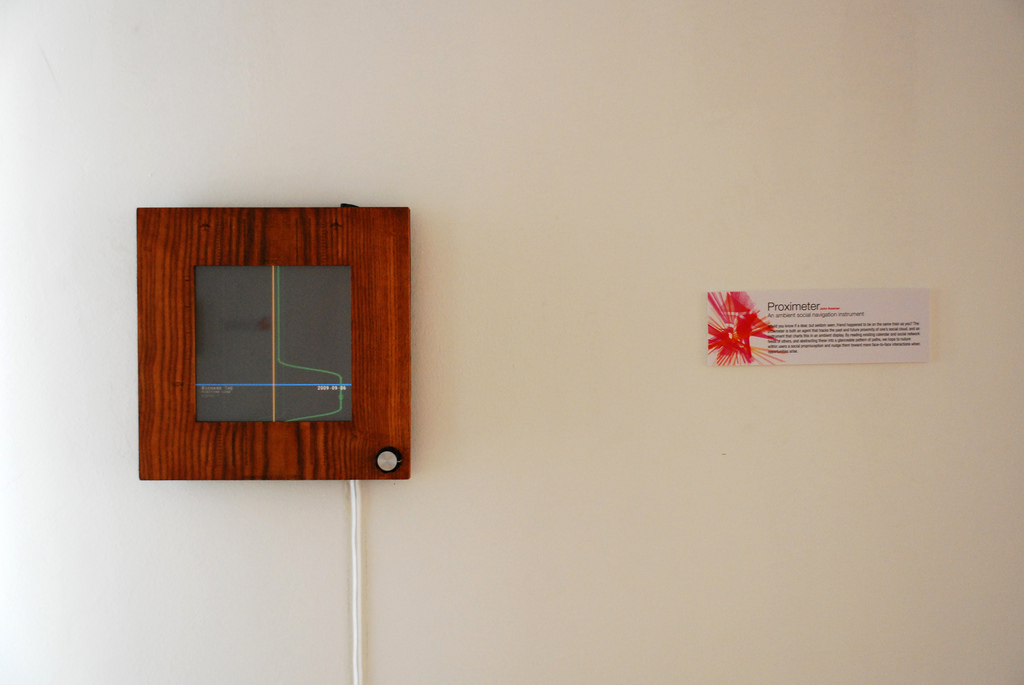 The proximeter is a wall instrument that tracks the past and future proximity of one's family and friends. By abstracting existing calendar and social network feeds into a glanceable pattern of paths, it nurtures a sense of the general state of our scattered tribe and nudge us toward more face-to-face interactions when opportunities arise.